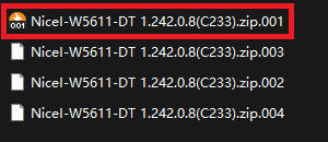 2.解压完成后会得到如下几个分卷压缩包文件,再右键解压zip.001文件